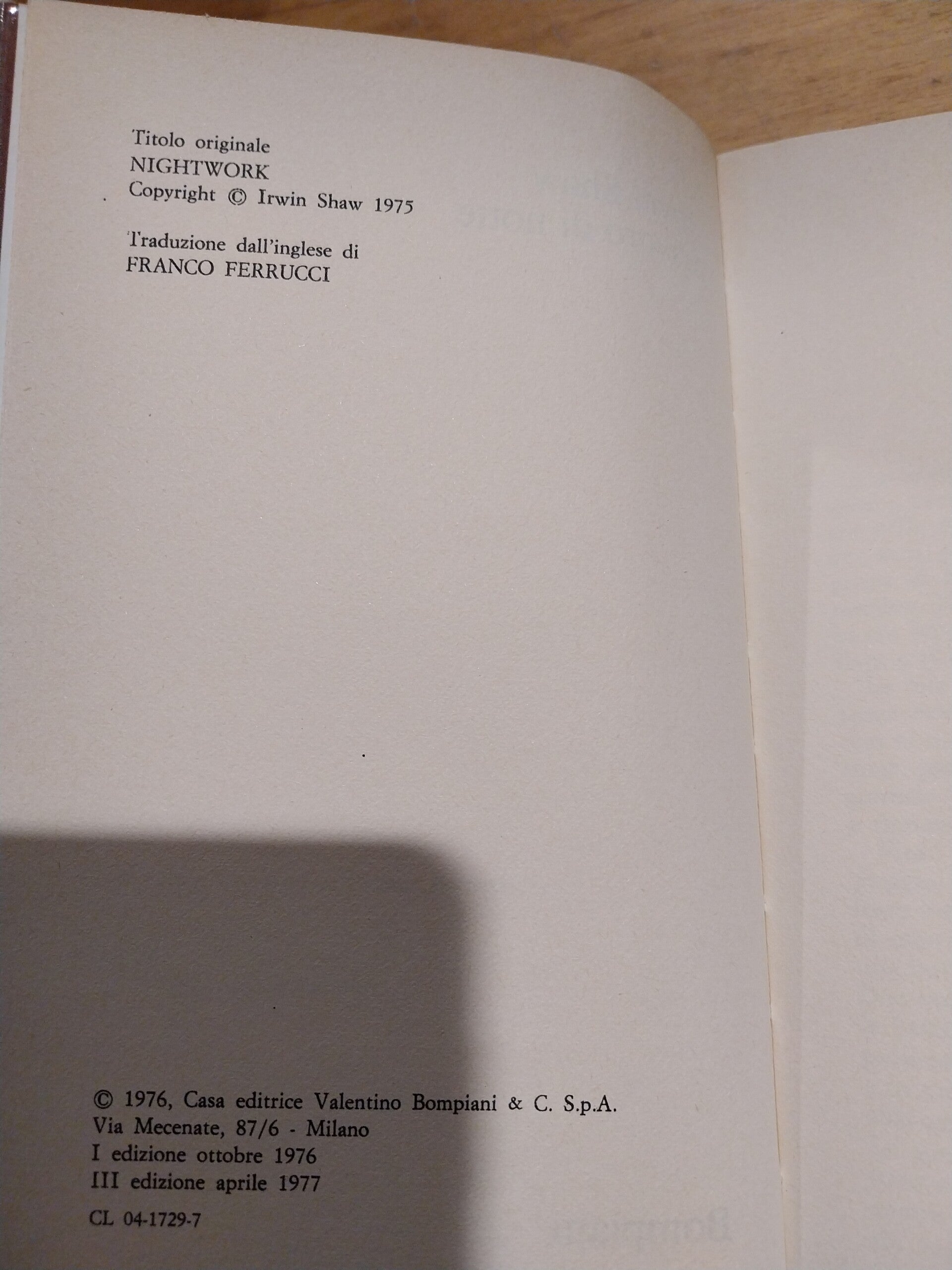 Titolo: lavoro di notteAutore/i: irwin shawAnno di Pubblicazione: 1977Genere: narrativaEditore: bompianiISBN: Formato: copertina rigidaSerie: --Caratteristiche particolari: --Lingua: ItalianoCondizioni: usato - buone