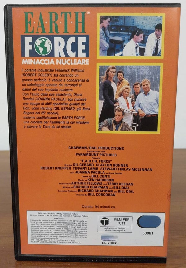 Titolo: earth force minaccia nucleareAnno di pubblicazione: 1990Marca: paramountGenere: fantascienza / azioneRegia: bill corcoran Attori: gil gerard / clayton rohner / robert knepper / tiffany lamb / stewart finlay-mclennan / joanna pacula